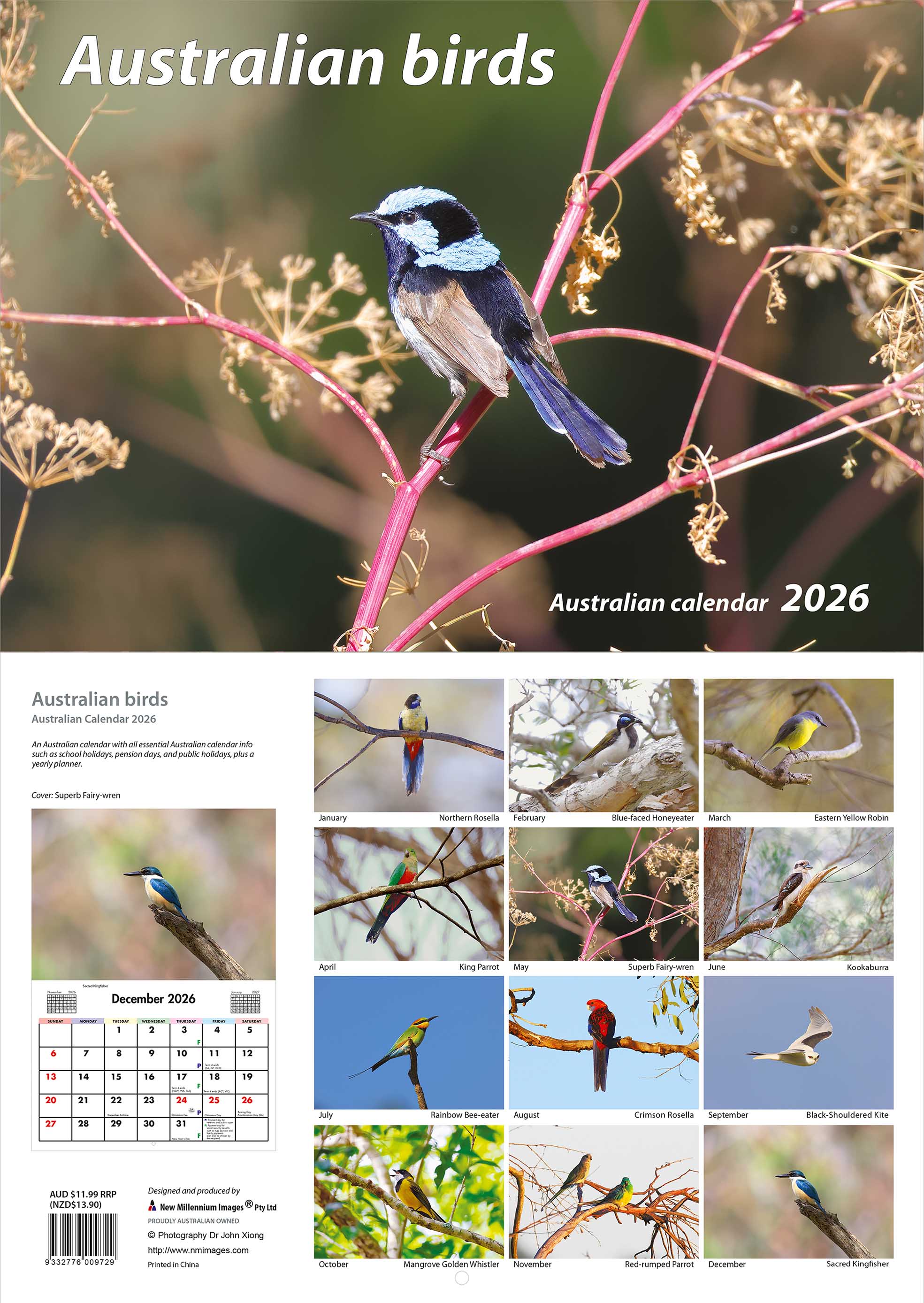 Australian birds - wall calendar (240x340mm, $11.99AUD RRP)